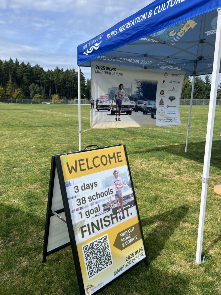 To help support this venture, I created posts to share on our social media showing where our runners traveled for each day, along with signage for beginning and end points and a banner with sponsor logos and Terry Fox pictured.